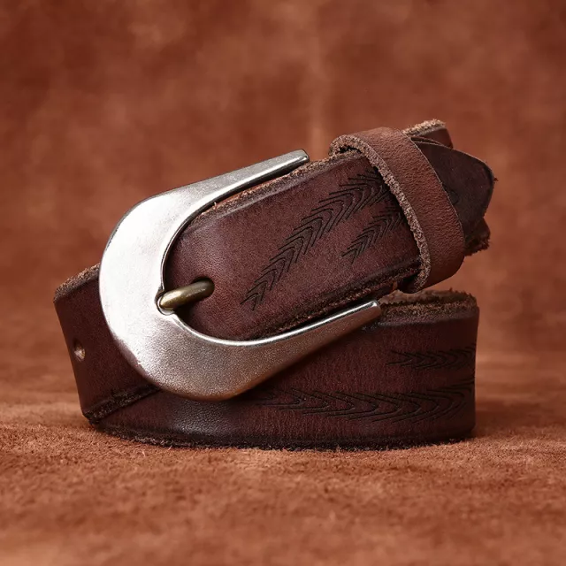 Men’s Genuine Leather Belt with Solid Brass Buckle – 1.5 Inch Vintage Strap